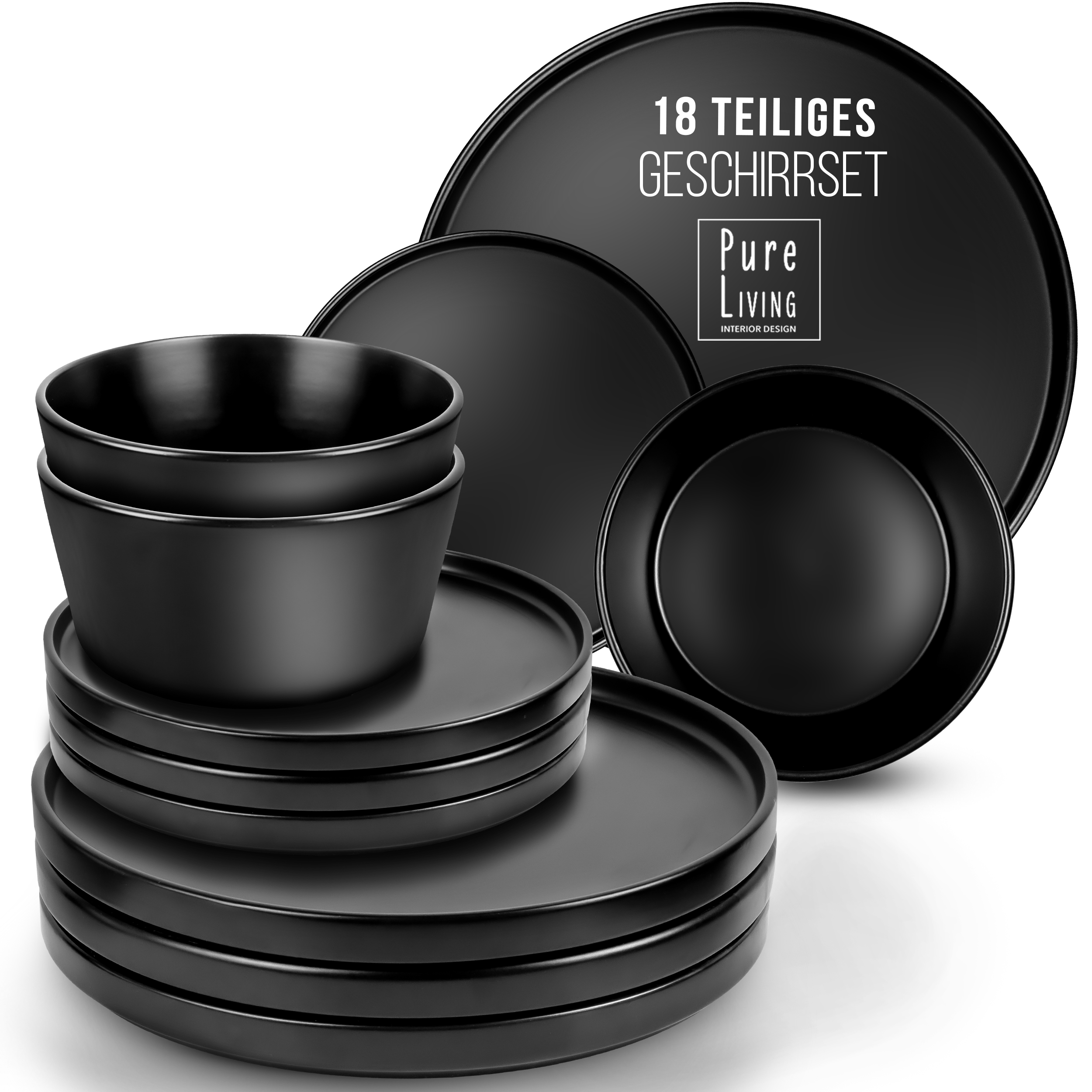 Steingut Schwarzes Geschirrset 6 Personen Manhattan 18-tlg.