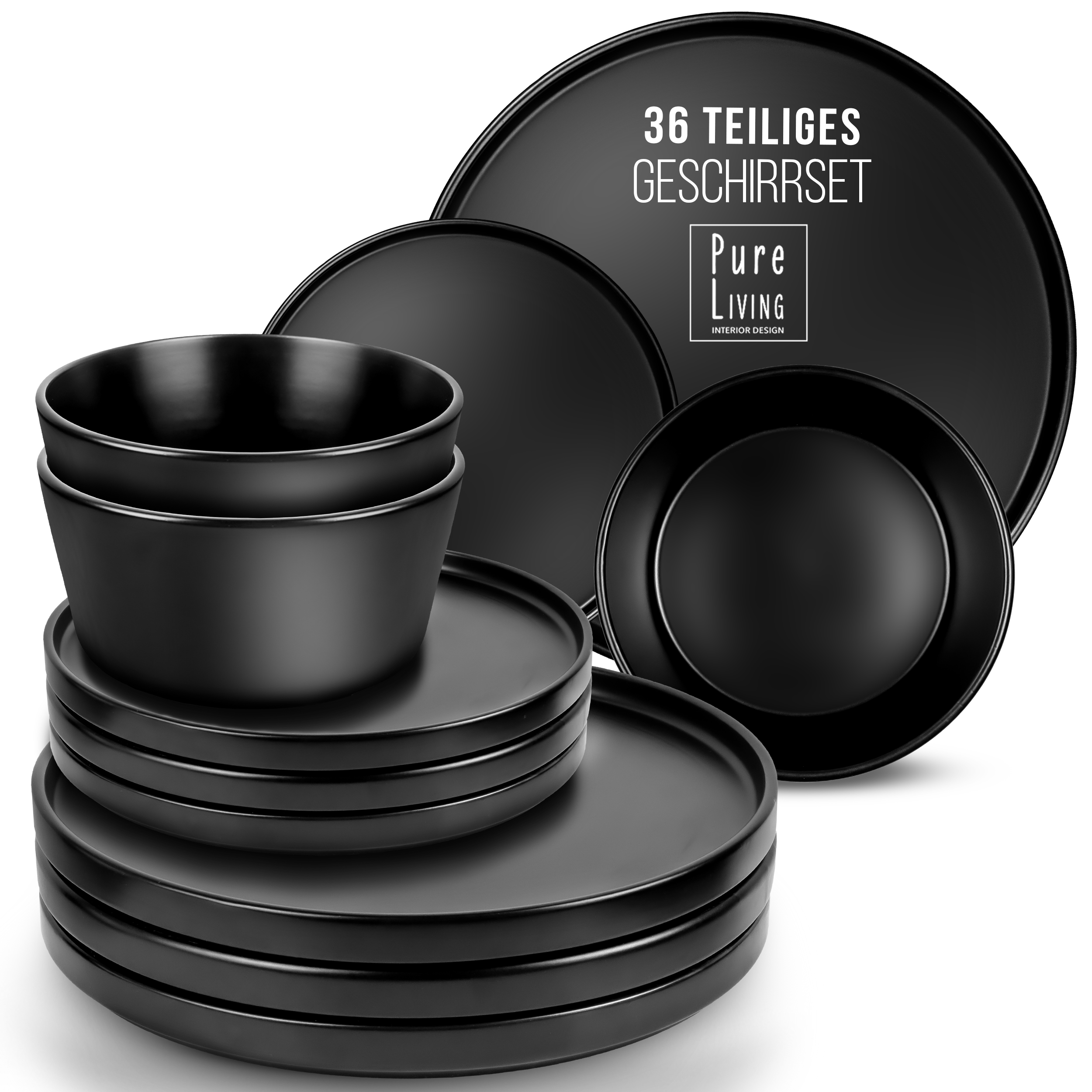Steingut Schwarzes Geschirrset 12 Personen Manhattan 36-tlg.