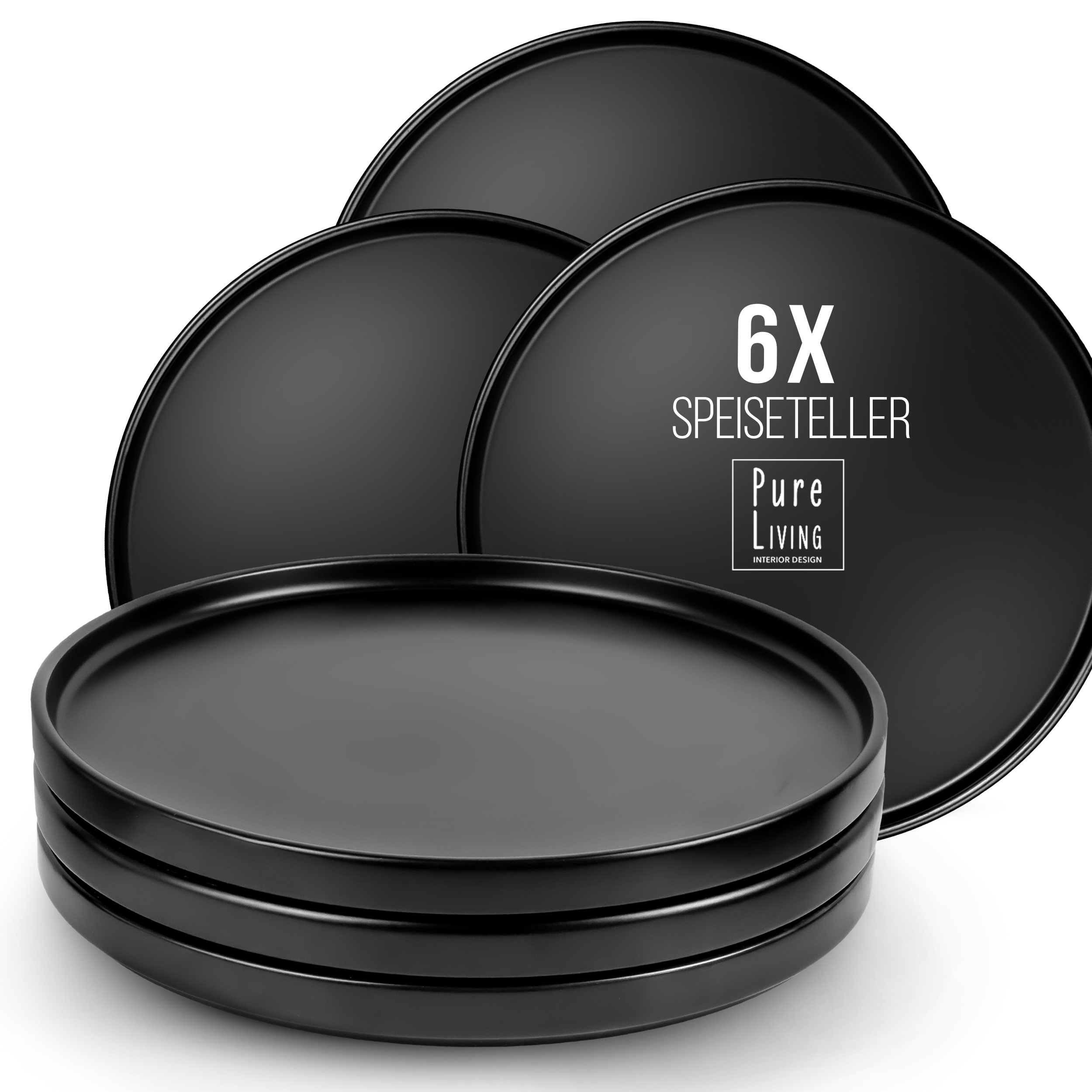 Speiseteller Schwarz Matt 6er Set Manhattan